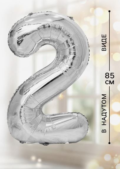 Шар фольгированный Цифра 2 85см цвет серебро 1/20/500 оптом и в розницу в Нижнем Новгороде, цены в каталоге с доставкой