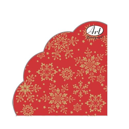 НГ Салфетки 3-сл d 32 см  Rondo Золотые снежинки на красном (12) 1/15