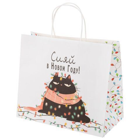 НГ Пакет подарочный крафтовый (28х24х14) Котики ЗОЛОТАЯ СКАЗКА 1/24/144 купить оптом и в розницу в Нижнем Новгороде с доставкой недорого